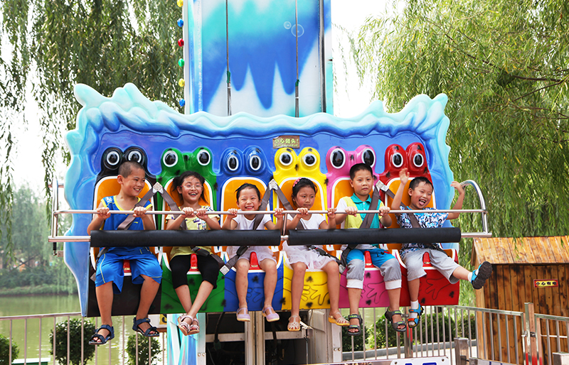 青蛙跳”游藝機(jī)是屬于一種勻速升高、分段下降的游樂設(shè)備,設(shè)備配有六個(gè)座位。操作人員待游客坐好后,扣好安全帶、桿,游客升高到一定高度,然后會(huì)跳躍式分段下降,猶如坐在大青蛙的背上蹦蹦跳跳的感覺。深受游客的喜歡,特別是青少年游客的喜愛。
